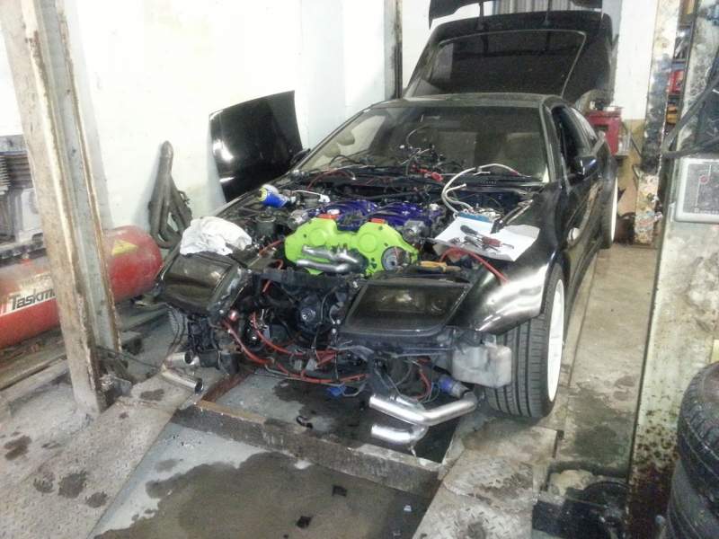 started taking the motor out again to remove the tubs that some "turbo experts" had rebuilt for me...bear in mind guys this engine and tubs had been on idle for only 20 to 30 mins to relieve all this oil into the decats..