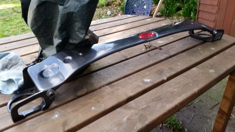 Decided at last since its a nice day to take the Tokyo auto strut brace off in preparation for chroming. Time to get the cleaning gear out and refresh the engine bay too.
