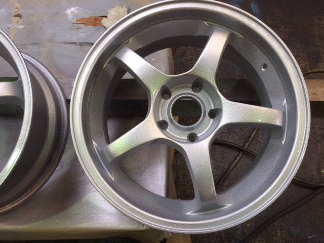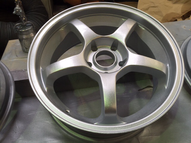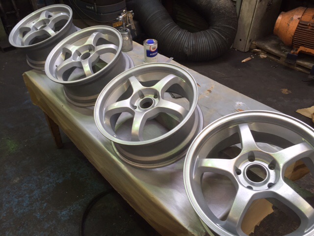 Well finished the alloys today,decided on magnum silver,three coats of paint and three coats of clear coat later and....