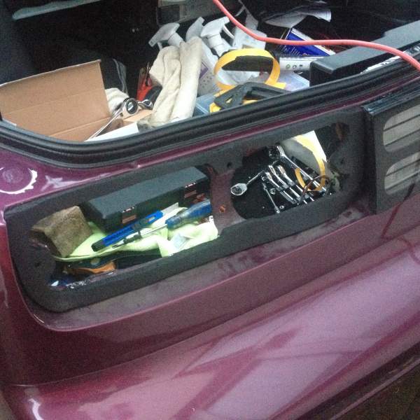 I cut out some gaskets for the rear lights from neoprene sheet with an adhesive backing..... This is a rough fitting that I am trimming up to fit snugly....