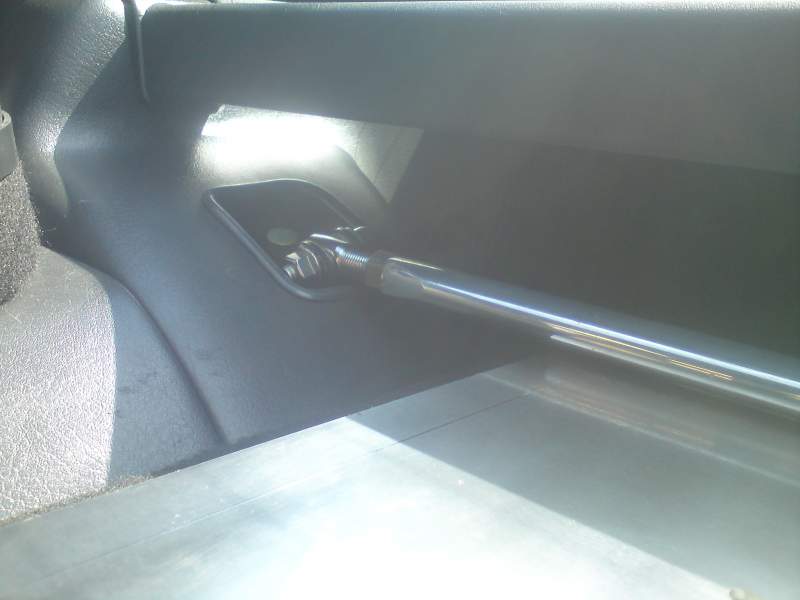 Anyhow I bought Andy Isherwood's rear strut brace and many years ago crudely I cut out and fit, I could just get to the adjuster, see below :no:.