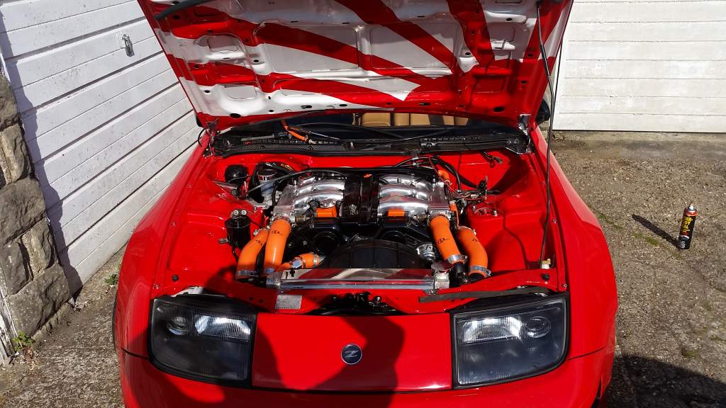 I didnt open my engine bay cos mine is untidy and frequently dusty I have a piece of carbon fibre sheet in the middle of my slam panel but its not to hide anything merely to force alll the incoming air from the bumper to go thru the rad not over it.Its held on with tie wraps which contrast with the pop rivets holding by broken/repaired fan shroud in place!!:scared:
