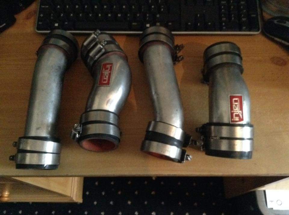 Rears fit nice and flush with body look really close so hoping no rubbing. Will be polishing and fitting my latest find .....a set of Injen intercooler pipes.