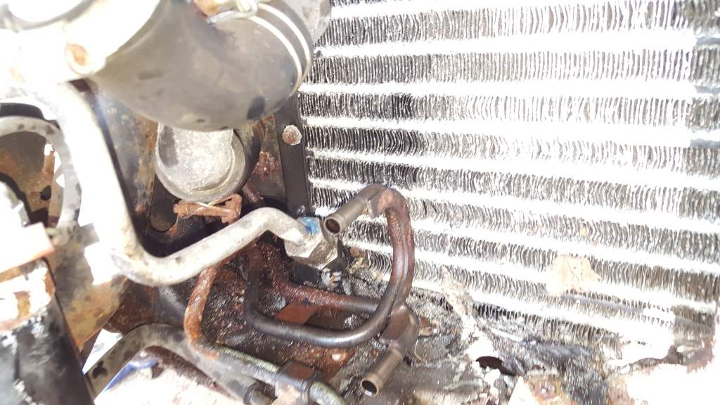 Well Finally got the oil pipes out, that were leaking like the titanic but, broke the air radiator in the process :surrender: