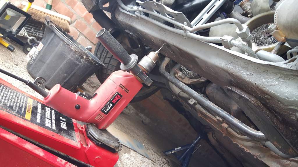 Well today i've been drilling snapped nuts out the most boring thing i think there is to do on a car, since my arms were starting to ache i balanced the drill on a trolley jack so made life a lot easier :scared:
