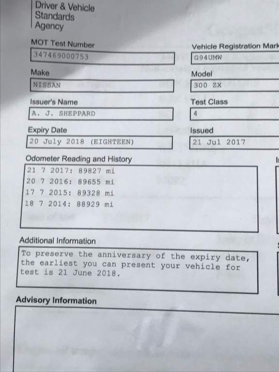 Another years MOT with no advisories. Looking at my mileage since 2014 I need to use it abit more! Seriously considering letting it go?