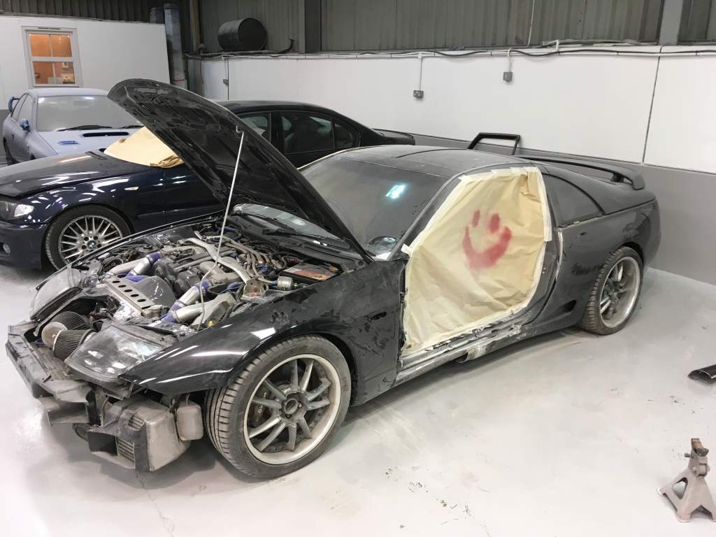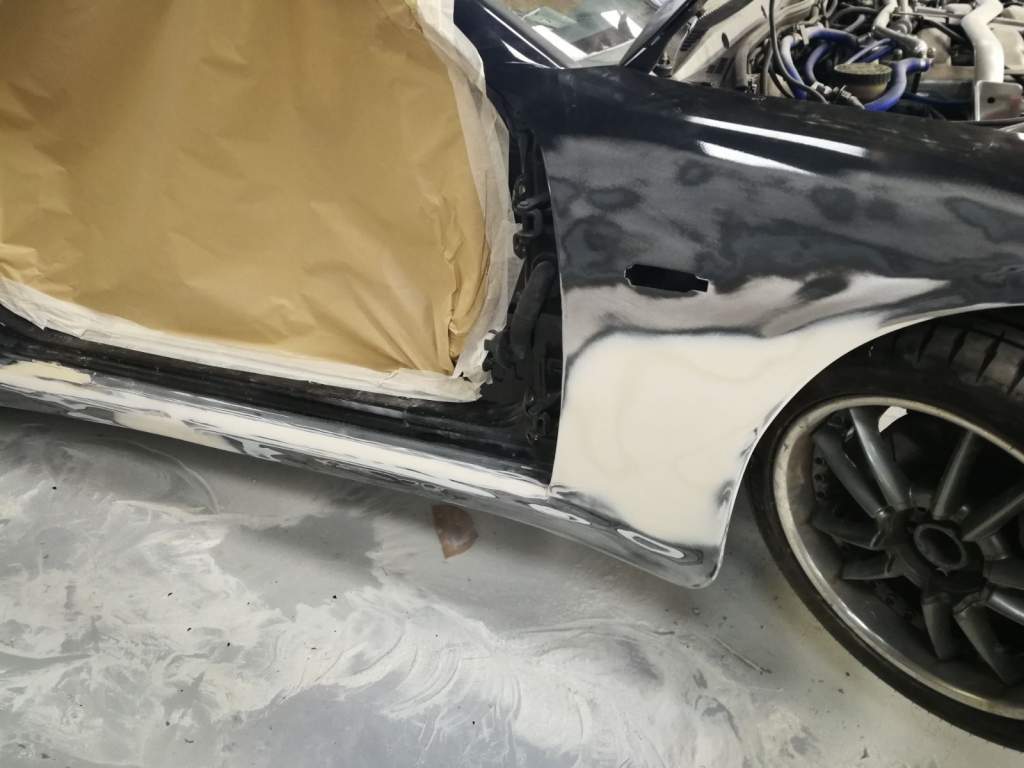 Popped up to the body shop yesterday to see how things were progressing. 2 new original Nissan wings were needed as the old ones were not in good shape when we started to rub them down.
