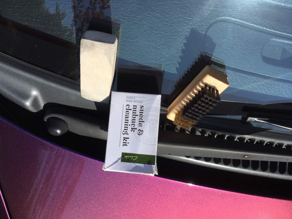 I had a great result today doing a mornings work on the interior. First job was to see if I could rejuvenate the alcantara interior. It had gone so flat in places it had started to look like black plastic. First thing I tried was a stiff shoe brush and although this was making what already looked ok better it wasn’t really having an effect on the flat areas. Then I remembered an old cleaning kit I brought from Clark’s to clean my Timberlands (go on, take the piss if you must. Long live the ‘90s!). The kit comes with a small wire brush, stiff brush and a, what looks like, compressed sand “rubber”. Using the rubber in small circular rubs the alcantara pluped right up. Then with a sweep with the stiff brush it all came together nicely. Don’t get me wrong it’s not perfect BUT it is so much nicer than it was.