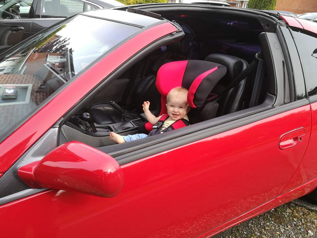Finally, the car seat was fitted for Alex's maiden drive in a Z.... I reckon she looks excited:)