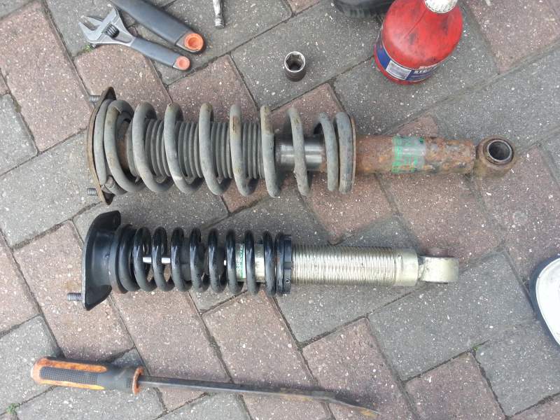 Finally got my coil overs fitted. they were second hand bought from a forum member, had them for a while before eventually fitting them. managed to get them on all right, and adjusted the height a couple of times but still think I can go lower.