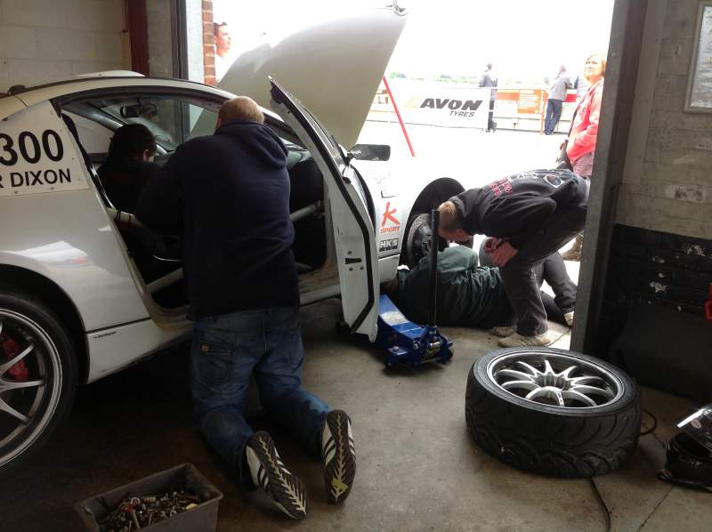 Just a quick update as always pushed for time. Car is currently running around 400 at the wheels so a little under powered but we're pushing on trying to make time elsewhere. Warm up I couldn't get over 5000 revs so we didn't get a lot out of that session. The practice wasn't much better as I was suffering major hesitation at bends almost like hitting the brakes. We assumed fuelling issues so filled the tank up for qualifying. Half way through that session the gear stick came off in my hands luckily I made it back to the pits but also had a burst pipe and oil spewing. Repaired the gear stick and mended a rather large hole at last for the final session it started to feel OK but gear changes were difficult as it felt like we'd tightened the stick too much maybe. Did my best time of the day but pretty slow compared to the other guys. Still enjoyed the day and Eurospec knocked themselves out getting the car through the day. At this rate we might be competitive by Brands:-) My car is so radical it takes a lot of getting used to but I'm pretty confident that even with the relatvely low power as a package it will be competitive just need a lot more seat time.