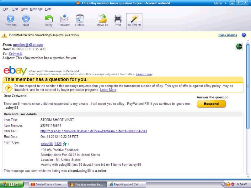 The one below could easily catch out someone not switched on to this kind of thing, have reported it to ebay as I always do and a quick source check shows a hijacked ip for the "nationwidemedical.com" in Orlando having said that most likely bounced from some where else....Russia, latvia, China etc. bloody menaces!!