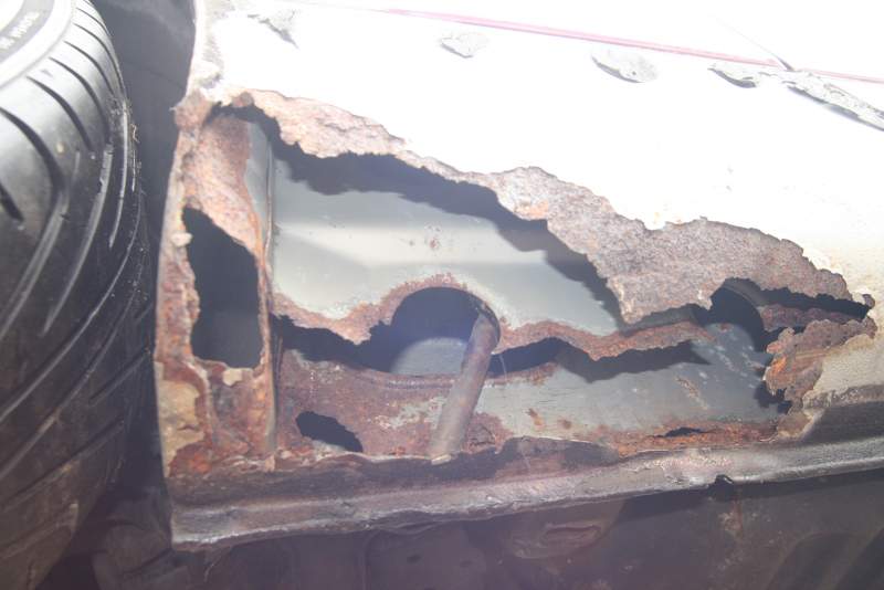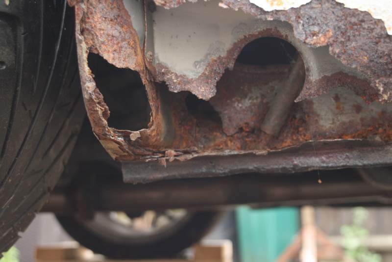 Yep the dreaded metal worm has eaten the rear sill.... couldn't see it behind skirting....