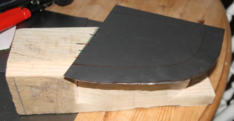 I looked at a sand bag to make a shaped panel the old school way, forming and cutting one and welding up the cuts, Then I finally decided to make a mould to form the sheet around out of a wooden block.....