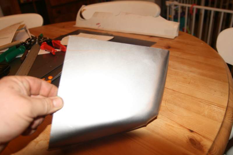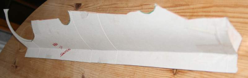 I have made a cardboard template of piece I need using redwine300's pictures to show the rough shapes I want for the hole as the big one has only top section left....