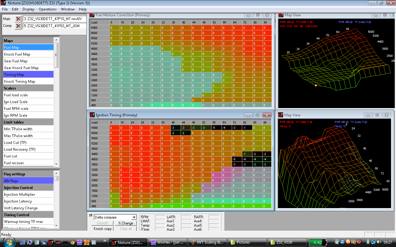 It can be argued that there are no doubt countless JWT-powered Zeds out there running fine, and I am definitely not disputing this. However, times have moved on with the advent of OEM-based live tuning options and standalone engine management and the job can be done properly. It wasn't long ago I was arguing with people regarding the perceived power abilities of the VG30DETT engine and stock components. I had all this data available then (I have done for about 5 years), but I wanted to let my own car & work do the talking rather than slate the 'opposition' so to speak :D
