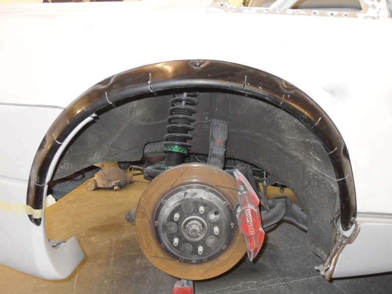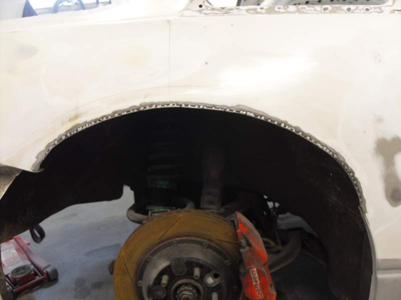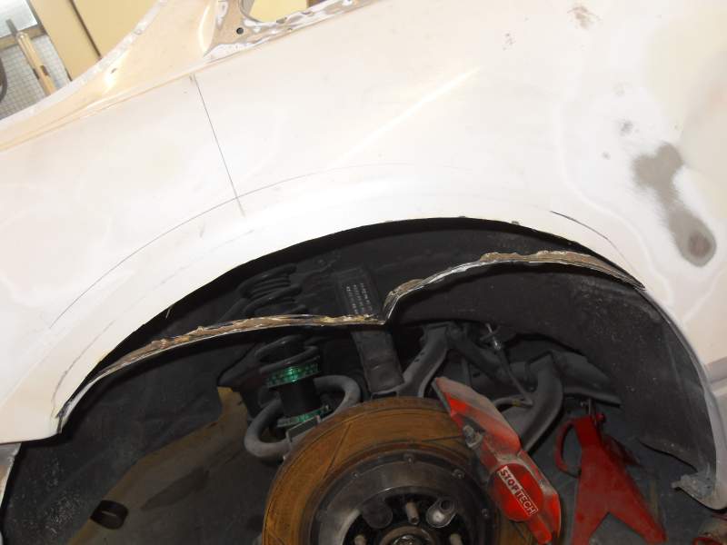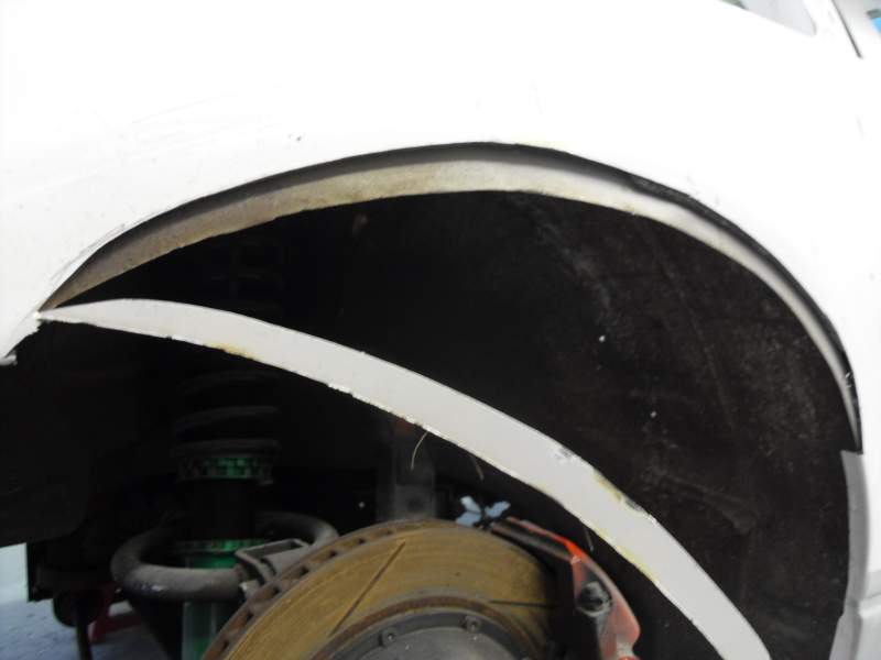 At the back Bob needed another 20mm width for a wider track but the tyres were catching the already rolled arches now under certain loads so we agreed to cut the arches back and fit fibreglass arches .