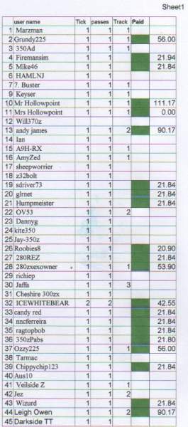 Added to list and payment as soon as you can as stated previously the Z Club has paid out over £3000 up front to obtain a prime location and the 60 track places and need to replenish funds