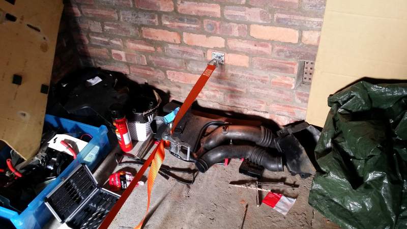 But today was the last straw so I bought a ratchet strap to help pull it back and secured it with