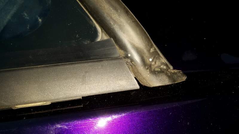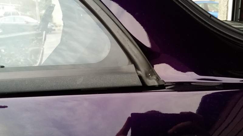 Correctamondo (lol)! Your quarter glass is missing the wrap round prt of the rubber seal. Most of the windows that have the trim piece removed suffer from this as they rarely come off without damaging the rubber in some way.