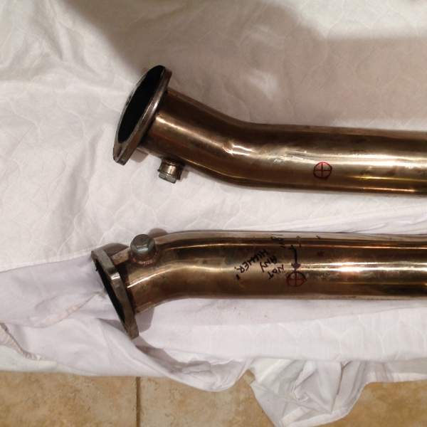 Finally managed to get the test pipes off. Drivers side was the problem with bugger all room to get at one of the bolts from the downpipes., as have a 3" exhaust there is even less room. Have marked where the bungs are going to be fitted for the AEM widebands, hope my welder at work will have time to do this for me tomorrow? Then wire up the gauges fit in the custom made fascia and set up the "failsafe" aspect of them. One more step nearer to getting the car mapped by Noel.