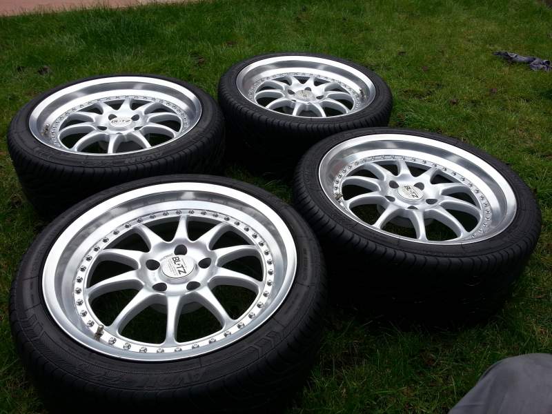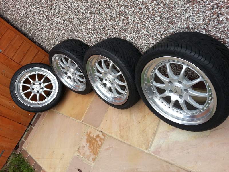 They are Blitz type 01 18" 9J ET23 all round that sit perfectly on the arches with no rubbing!