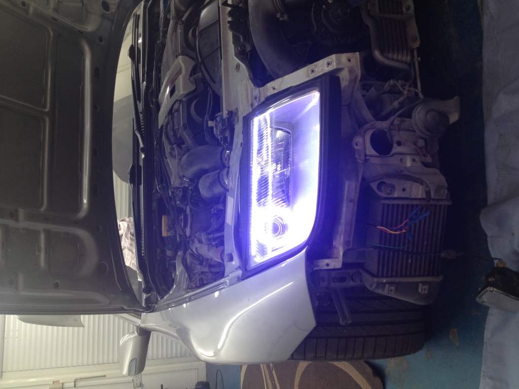 Got the Headlights in and wired up the DRL's, Halo's and HiD's