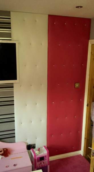 Been doing up my wee girls bedroom recently as she has moved into our old room. since it had wallpaper on a plasterboard wall that would be a pain to strip off decided to give her a leather wall. takes more time than I thought lol but its getting there. These are easy panels so fair play in the work mondo does.