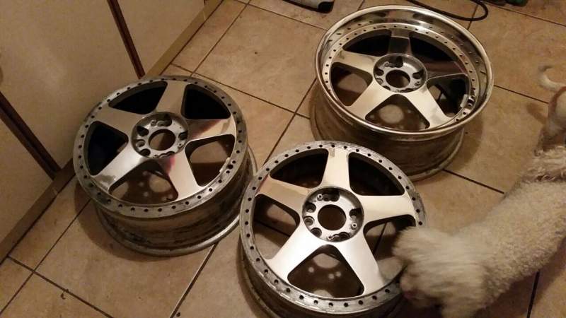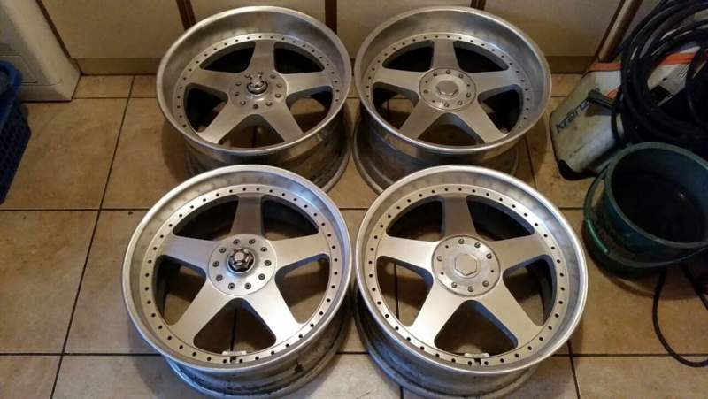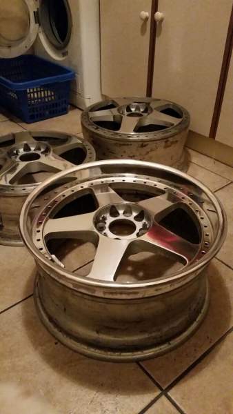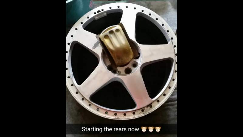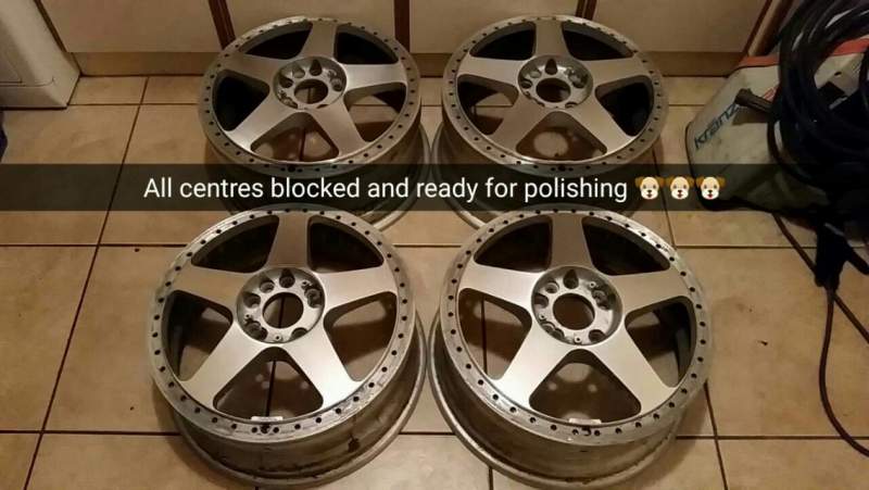 Thanks Si, they're getting there! I'm meeting him on Saturday to collect them to get the inside spokes painted a gunmetal grey, they're then getting bolted and resealed together, will have to do a test fit regarding tire size and arch rolling after that.