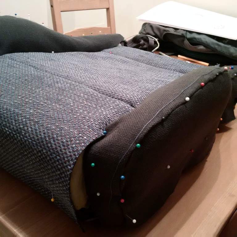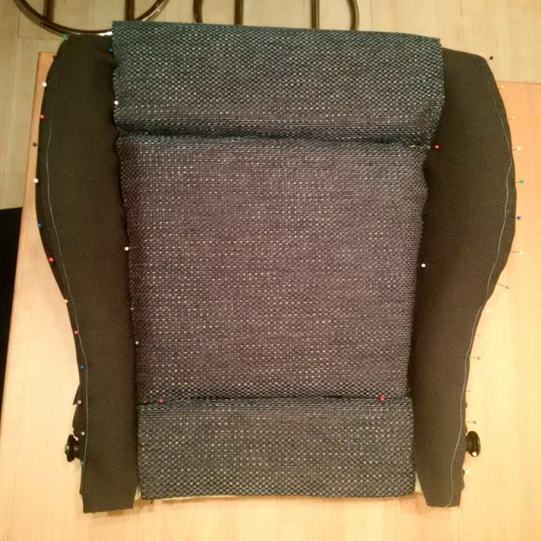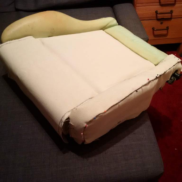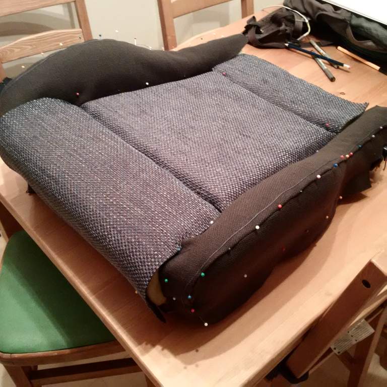 So passenger cover is off with all its intricacies. Time to start pinning the pattern on to the seat to check the fit. The good thing is that the foam seems in really good condition :)