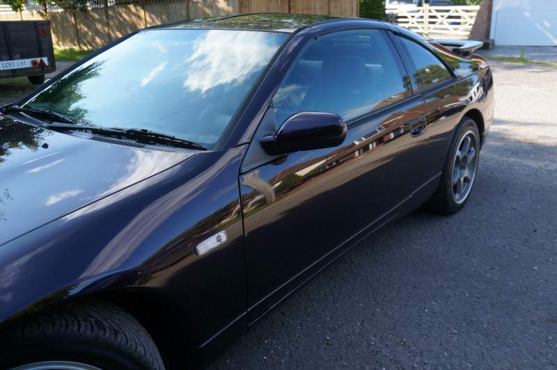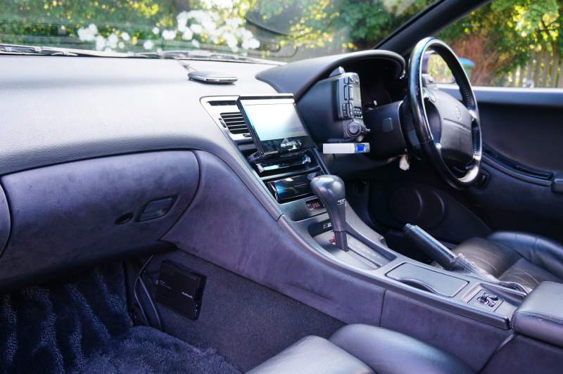 So am I excited by thic car...you bet I am, almost to the point of wanting to keep it for myself, but I have promised to make it available so here it is. I don't believe you will find many better examples of this model anywhere, and the first thing I want to shout about is that there IS NO RUST OR CORROSION ANYWHERE!!!. It has come from the Souther part of Japan where the climate is very Californian like. The paint work is stunning. the Metalic purple just pops!! a superb glossy paintwork with just a few tiny scratches. nothing that a professional couldn't rectify easily. In fact to make this a showroom model you would only need to do the following.1. The two or three small scratches on the paintwork (no stone chips). 2. One small scuff on one of the corners of the rear bumper. 3. A couple of worn patches on the black targa surround. 4.One of the four wheels needs the outer rim recoating where it has flaked a little. 5. a tiny amount of colour added to the seam of the drivers seat bolter (really minor). 6 Steering wheel has a few wear patches on the rim. So what else can I tell you. The timing belt was changes at 90km and this is identified by a ticker on the cover. The car has completed just 86,000 miles in 17 years. The headlights have been replaced with gas ones as you may see from the picture of the engine bay where the two modules are attached to the frame. you will also see that there has been no accident damage and the radiator support is perfect. Inside this car there is a stunning Pioneer Carrozzeria AVIC HV09 DVD/CD/NAV/with rear Reversing Camera. A top of the range model with bluetooth and a seperate box with USB input. Two tweeters affixed to the imside of the top of the doors, a neat subwoofer in the boot, and a remote control in the centre console.