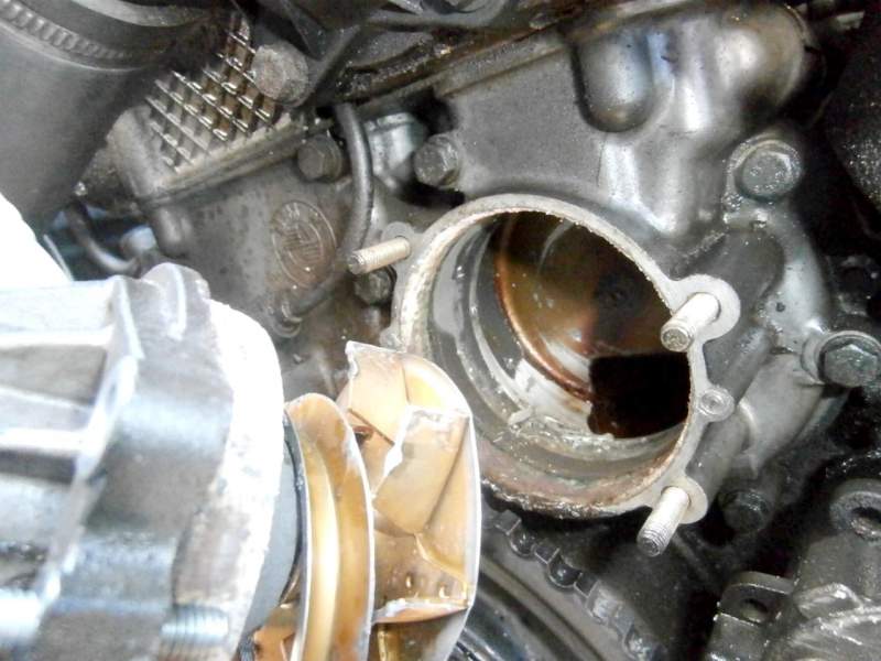On the 2.8 engine access is real easy, fan off rad shroud off and your there, so nice to have space after 17 years of knuckle scrapping on zeds!! lol so as you will see in the pictures the pump has literally fallen apart, destroying the impeller in the process. The pump housing inside has taken a beating too but not terminal at least, the real question is why had it failed so spectacularly, guess you will never know for sure, the pump was not original and suspect this to be the most likely cause as its not genuine or even a nice oem one, maybe just poor quality?