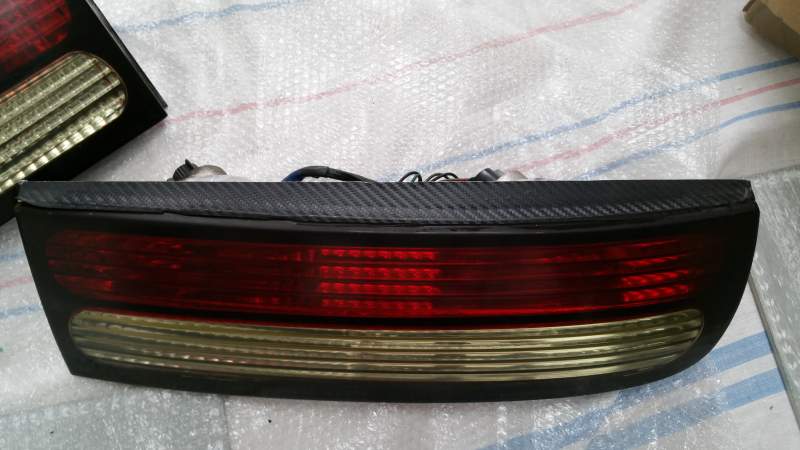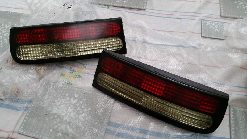 Pair of aftermarket crystal rear lights. Have carbon fibre style vinyl wrap on the top, it may come off fine but I don't know whats underneath. £60 posted.