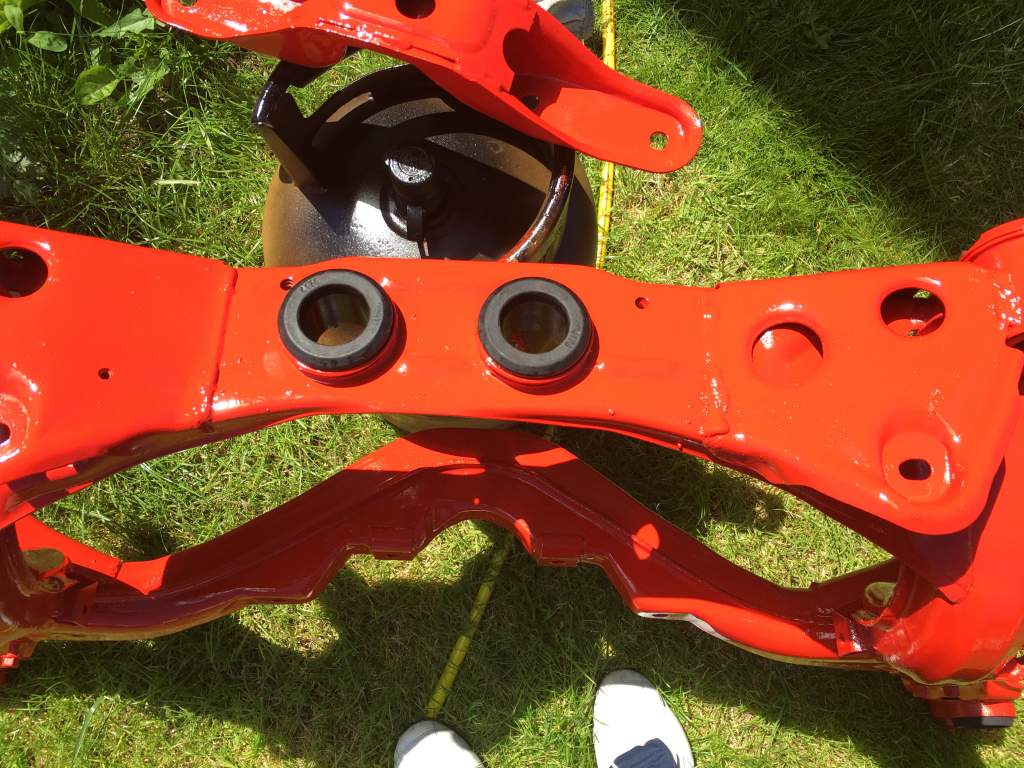 Ripped/burnt out the diff bushes and installed my new Energy Suspension ones, went for black to contrast against the red, tidied up the subframe with another nice layer of red:thumbup: