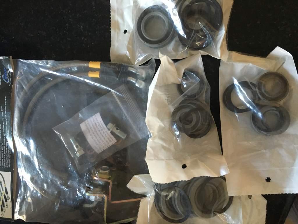 More goodies in the shape of Braided rear brake lines, rebuild kits for the Brembo's, pad springs, pins and mahoosive carbon ceramic brake pads:punk: (fit the R35 GTR):bow::bow: