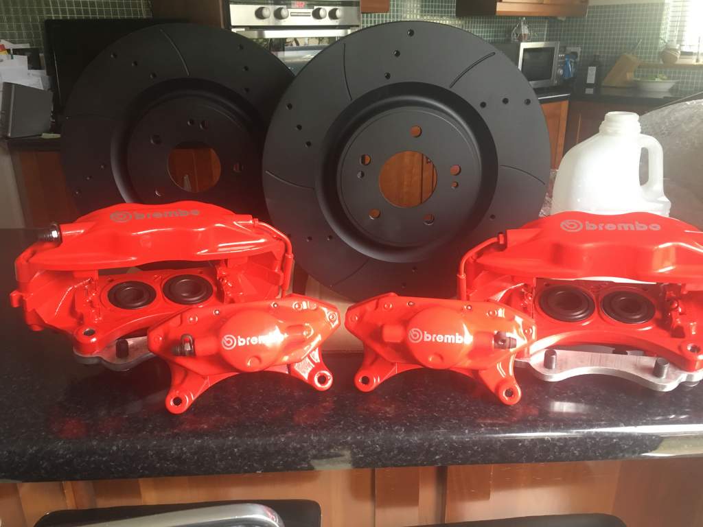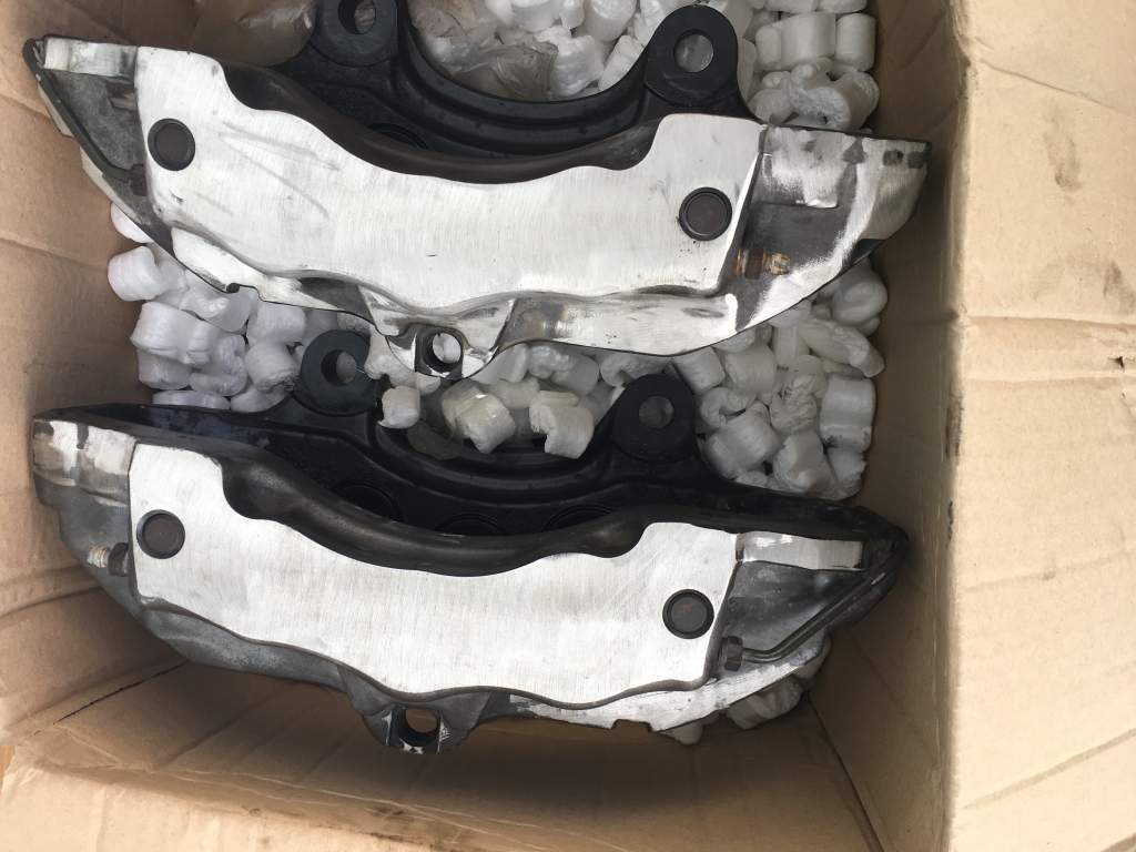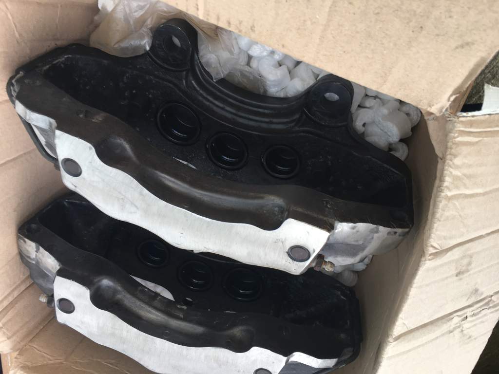 So, worked all weekend and my brake guy has come back to me saying that the powder coaters got some around the piston chamber grooves for the dust seals, I should have known when the foam blanks were rock hard and shrivelled up:thumbdown:. Obviously when they re-did the coating they never replaced the blanks and they shrunk more by being heated a second time, dust seals now won't fit:scared: he cleaned one out after about an hour, but he's split one seal test fitting it. I'm now trying to clean them all out with a small jewellers file and have to order another set of seals :thumbdown:
