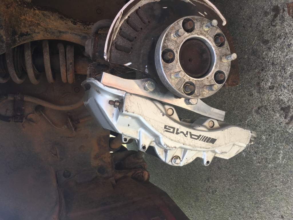 So, it was too hot to stay cutting down trees, took a break at lunchtime and said I’d revisit my AMG calipers, removed the original Merc bracket and installed my new one, I’ve hit a couple of problems,