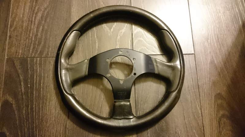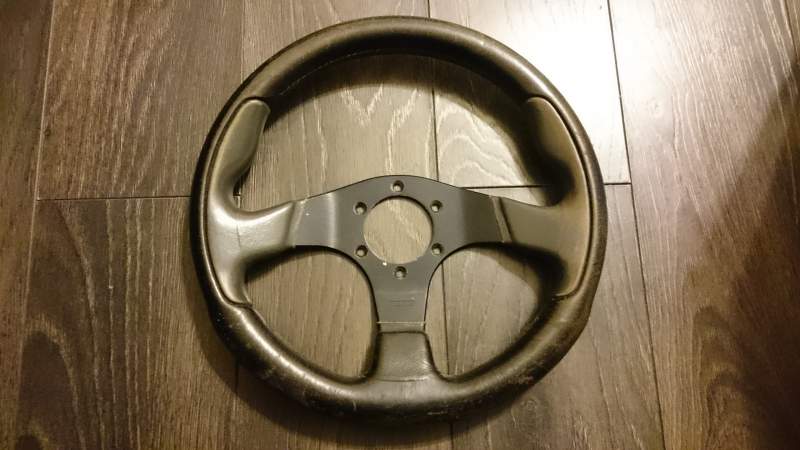 Genuine black leather Momo steering wheel. Decent condition £65 SOLD