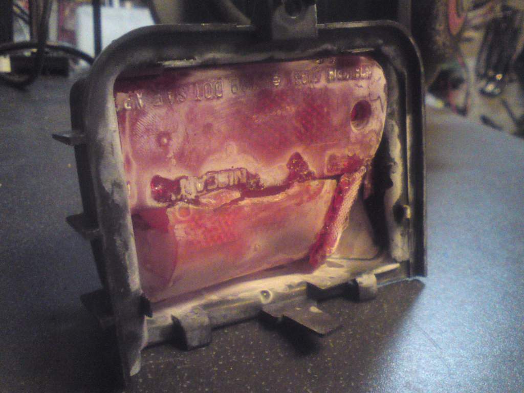 The hot bulb looks to of melted it and in the first place the reflector has been just broken crudely and then put in like....well a jigsaw.