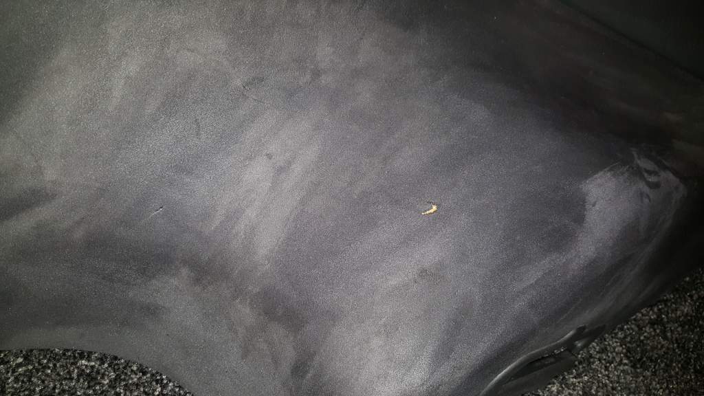 there is a small damage to the rear drivers side which looks to be a cigarette burn.