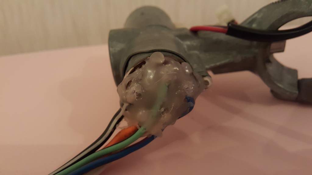 The rear of the ignition cylinder has glue on it but that's just for electric insulation.