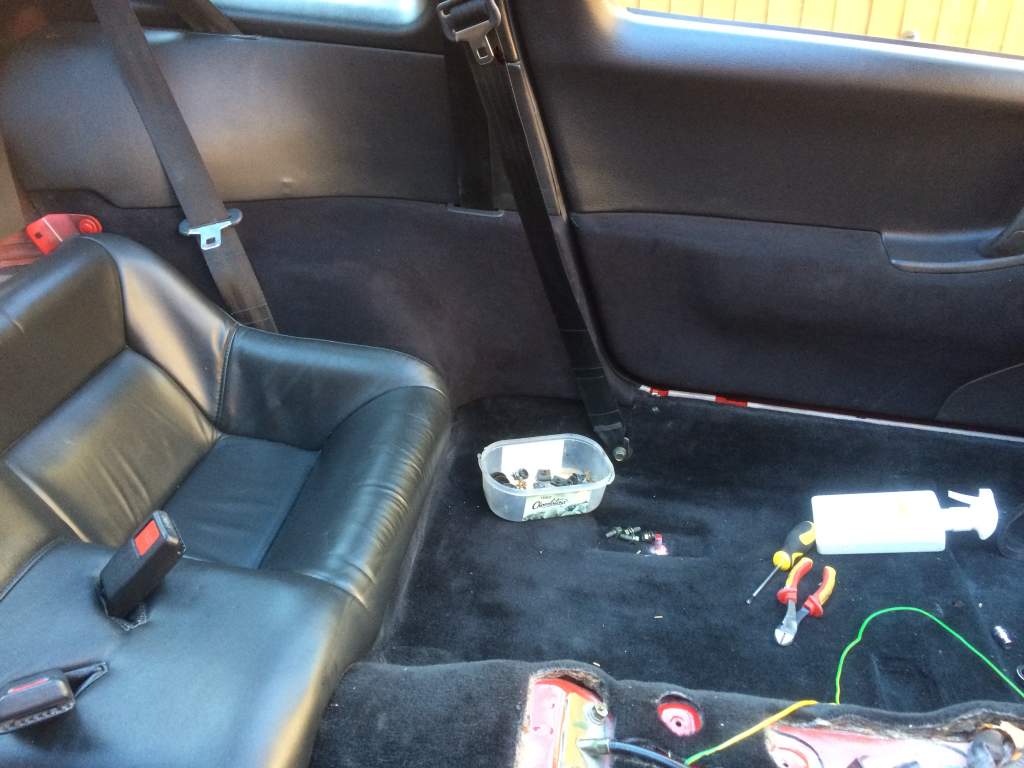 got the gear box back on fitted new speakers all round with dab radio all working now get the retrimmed door cards back on an electrics hooked back up did wiring for fog lamp in center panel and reverse light to. here are a few pics of the door cards looking super in black alcantara