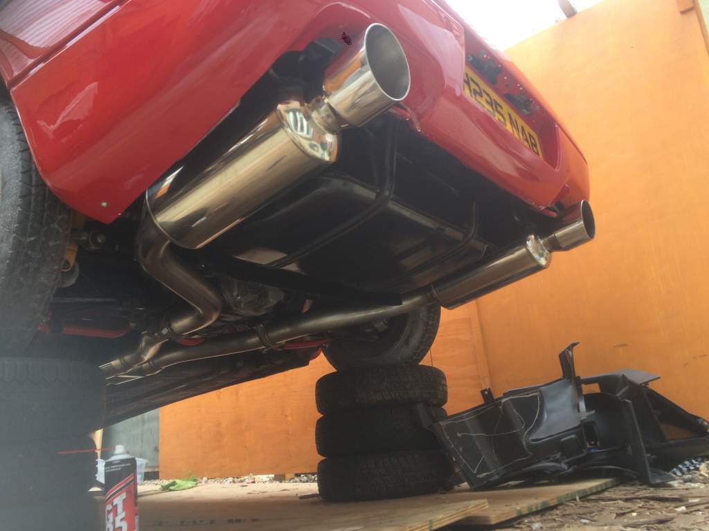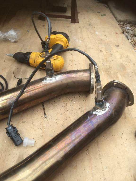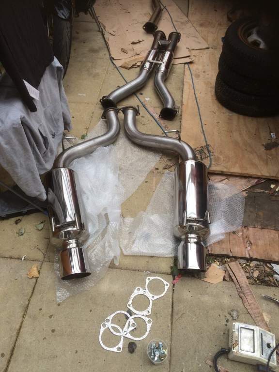 today i welded onthe bungs for the afr gauge and fitted the fill 3 inch system so we how have full 3 inch rite through inc down pipes was bit of messing to get it fitted as i was on my own would have been much better with some help but after a few hours it was done all new bolts and gaskets to