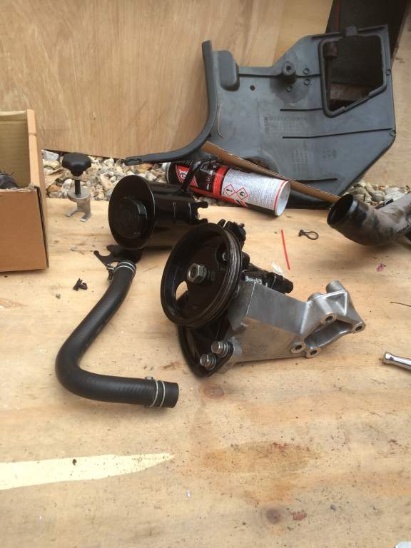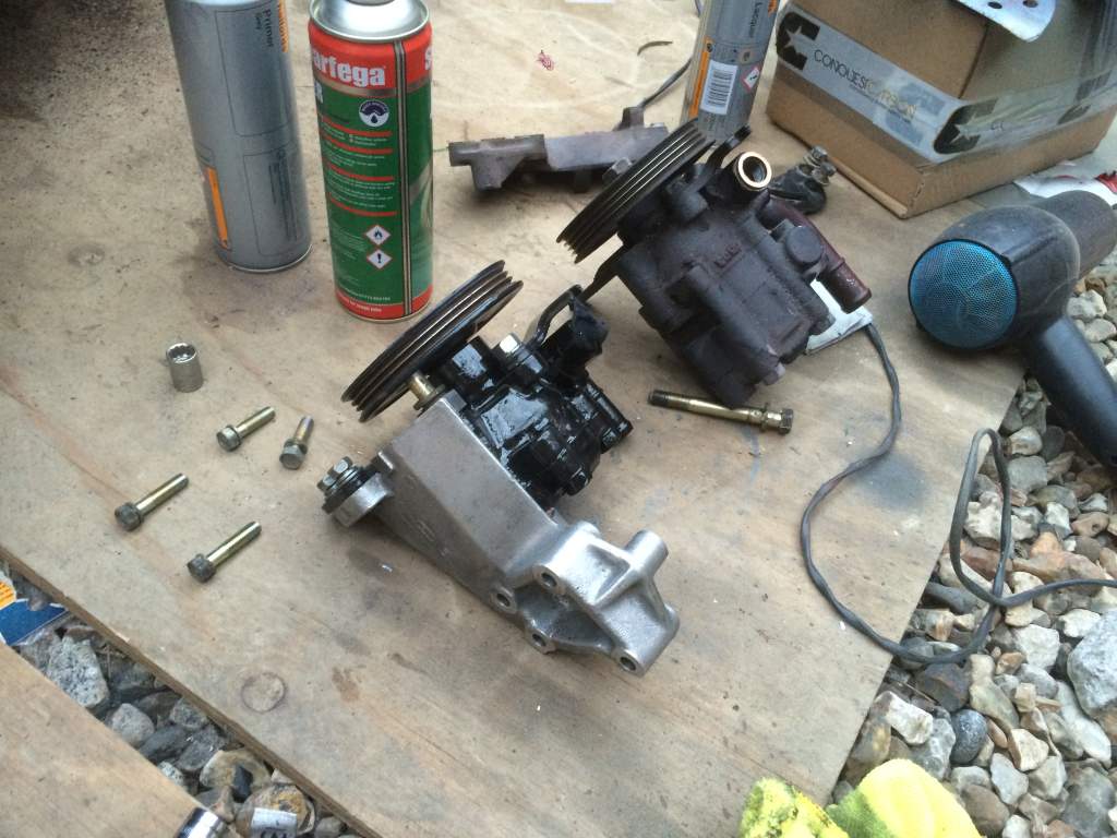 just finished tt power steering pump to to n/a power steering pump swop and pot here is the tt dirty one next to the rebuilt na pump i build a few months go its all in and done now bit of messing about also fitted new belts and fitted a jap water pump pully as i have a uk car it was a bigger pulley so spins slower