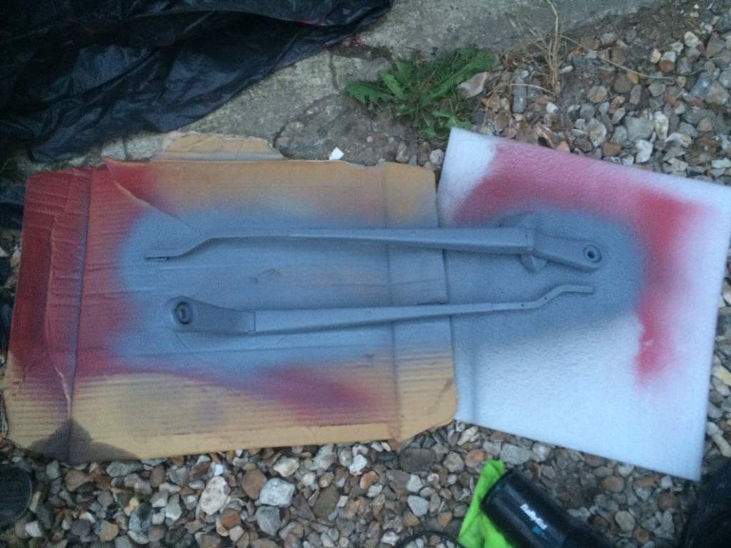 still working on bay getting ready or fit refurbed na power steering pump and pot and fitted refurbed wiper arms 4 under coats them rubbed down then 6 top coats and new blades and scuttles were painted to looks great