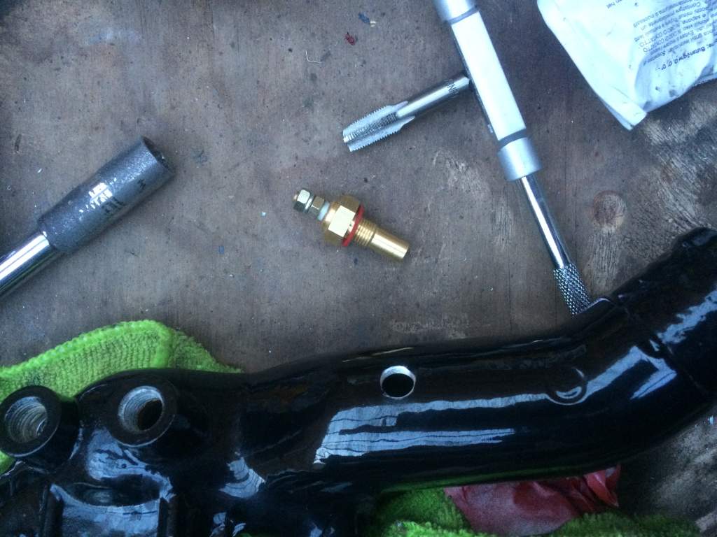so fitted the temp sensor i drilled and tapped 1/8 the out let pipe i fitted the sensor used a fiber washer and this german heat proof sealant great stuff and fitted the pipes back to the car