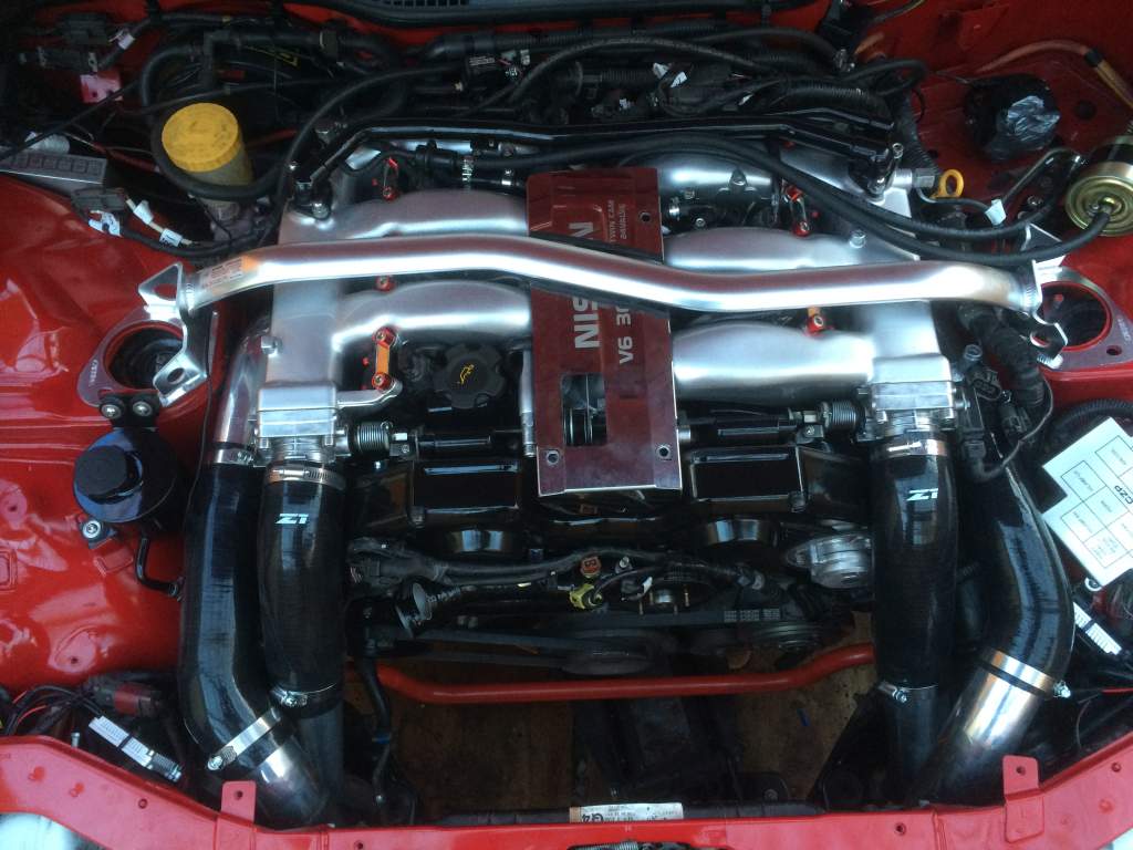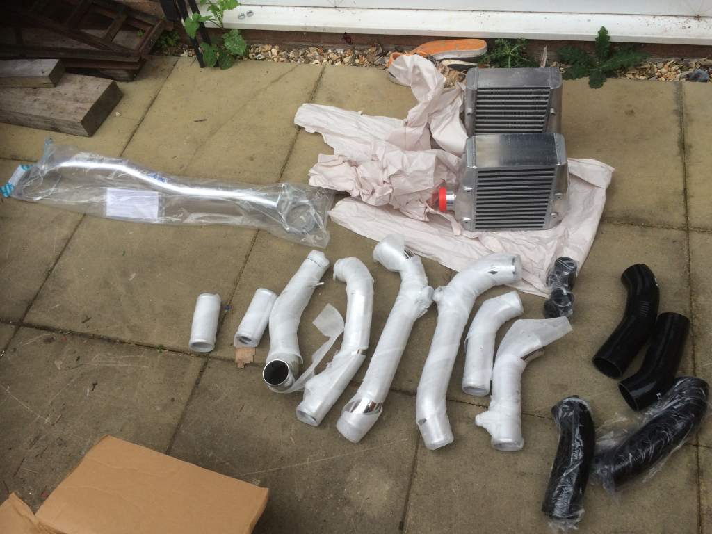 so fitting the 2.5 inch intercooler piping and z1 massive intercoolers they are monsters. and carbing strut brace only problem z1 have not send me all the silicone couplers so thats a rite **** missing the ones that go on the inter coolers so slowed me rite down but not getting mad just have to wait a bit longer