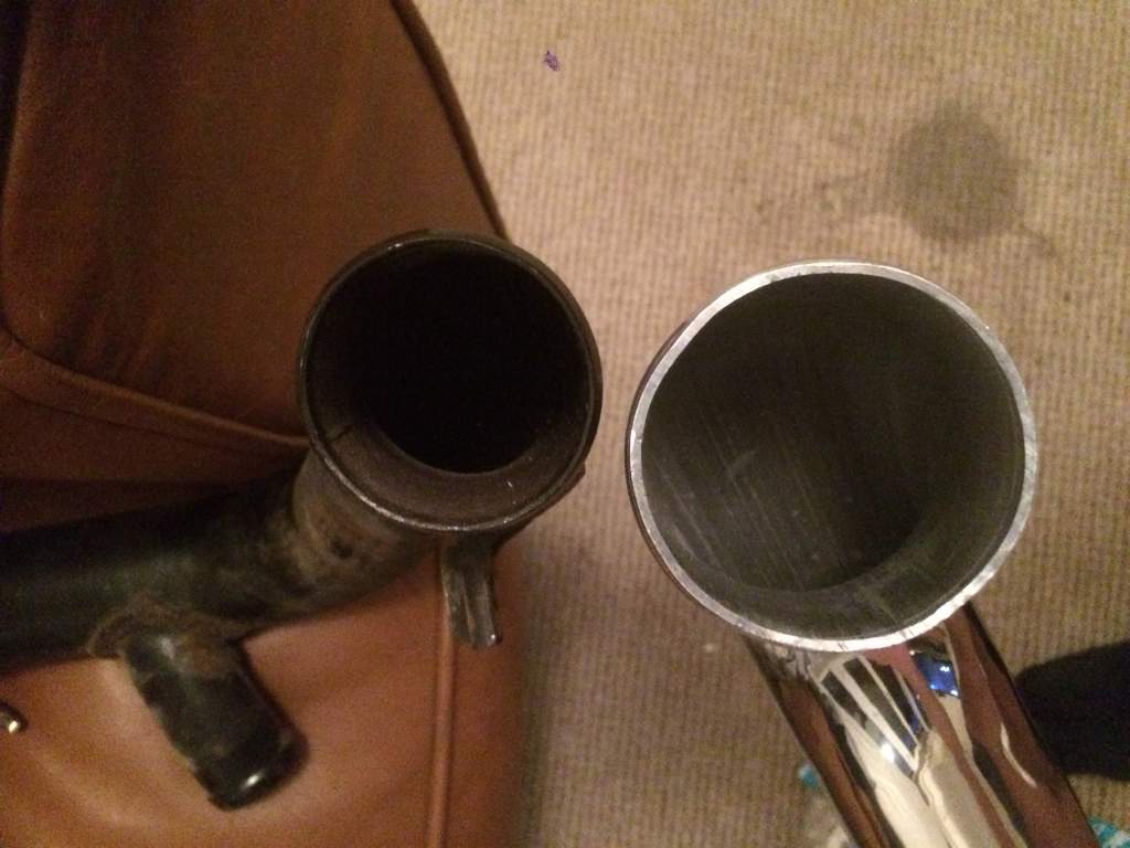 very fiddly indeed to fit got one side lined up will carry on 2 moz its a little frustrating to fit so far and a tight fit at that you can see side by side just now much bigger the pipe is over stock