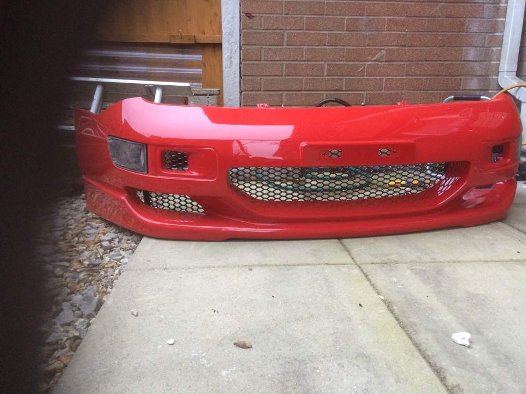 test fit of the audi style mesh on the bumper and we know have lights at last front and rear been a long time since i seem them on lol got wiper jets fitted and moved to the scuttle and the alarm siren moved out the bay to inside the wing and a few other jobs done done 12 hours today on the car
