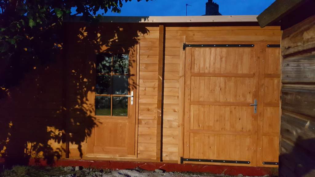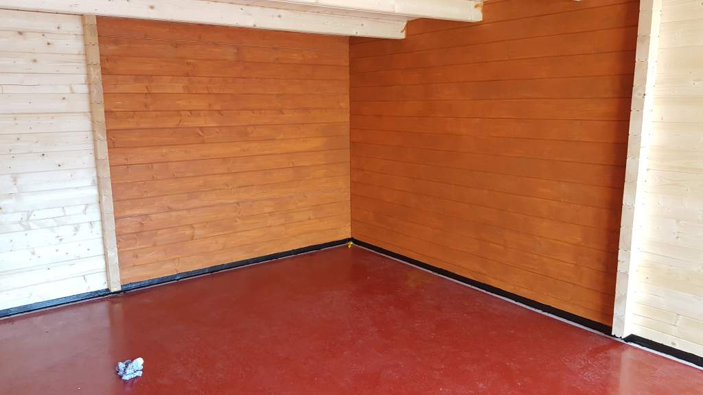 The outer area of the garage is now 90% coated in golden oak ronseal which look great.